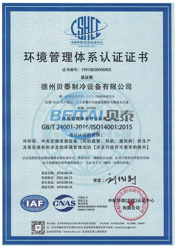 貝泰制冷 —— 專門致力于冷卻塔、中央空調(diào)、空調(diào)末端配套產(chǎn)品、和玻璃鋼制品的研發(fā)、制造、銷售和服務(wù)于一體的現(xiàn)代化企業(yè)