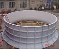 由于凈化和電解車間介質(zhì)溫度較高且腐蝕性非常強(qiáng),因而在與內(nèi)表面接觸的膠衣采用33#耐高溫、耐腐蝕的樹脂,中間層采用耐高溫197#乙烯基樹脂,外表面則采用耐紫外線的美國亞什蘭膠衣。其手糊方法將嚴(yán)格按照《手糊法玻璃鋼設(shè)備設(shè)計技術(shù)條件》進(jìn)行。